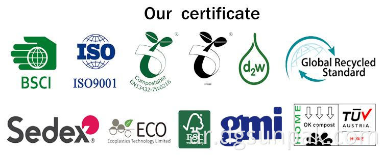 الشهادات: Sedex .GRS.FSC.BSCI.ISO.GMI