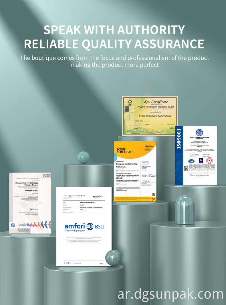 لقد حصلنا على شهادة GRS ، قابلة للتحلل ، قابلة للتسميد ، هي الشركة الأكثر نضجًا لتغليف حماية البيئة